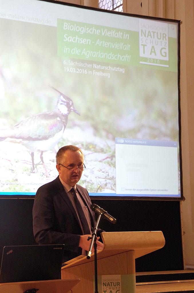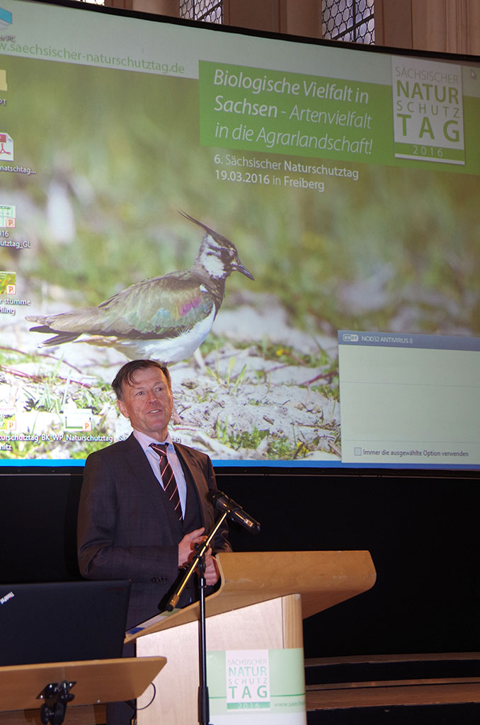 Schirmherr Dr. Rößler dankte in seinem Grußwort den ehrenamtlich tätigen Naturschützern, ohne die der Schutz der bedrohten Arten nicht möglich wäre. Die Politik habe die Verantwortung, das ehrenamtliche Engagement zu stärken, bei der Nachwuchsförderung zu helfen, finanziell und unbürokratisch zu unterstützen. Die sächsische Gesetzgebung sei auf eine nachhaltige Entwicklung ausgerichtet, erklärte der Landtagspräsident.