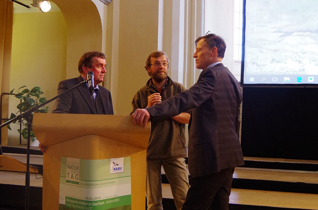 Anwesend war auch Sachsens Staatsminister für Umwelt und Landwirtschaft, Thomas Schmidt. Er lobte in seinem Redebeitrag die intensiven Kontakte zu Naturschutzverbänden und gemeinsame Aktivitäten, die vom Land finanziell unterstützt werden, machte aber auch deutlich, dass diese Finanzierung in der Zukunft nicht gesichert sein wird. Ausgaben des Landes in anderen Bereichen seien notwendig, so dass die Finanzierung von Naturschutz und Landschaftspflege eher aus Mitteln der EU angestrebt wird.